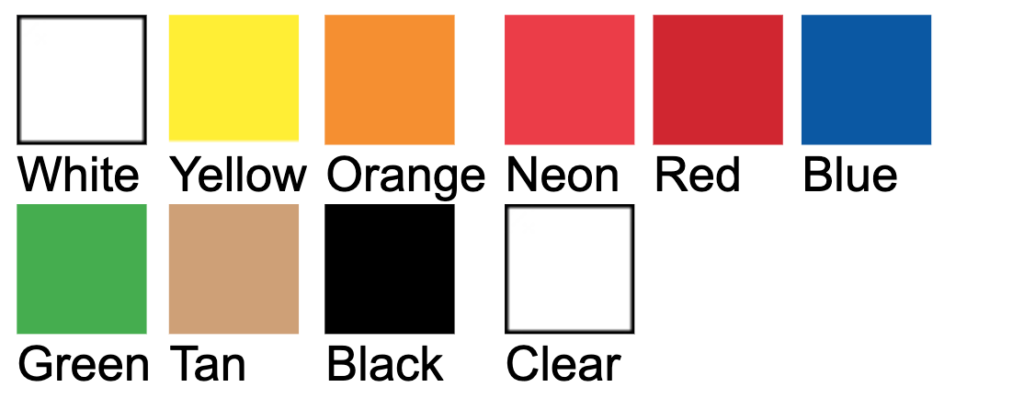 Choose from a variety of colored tapes and standard or special order inks. A one case minimum is required for stock printed tapes and a five case minimum is required for custom printed tapes.